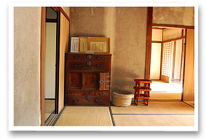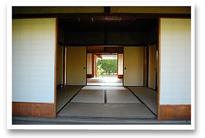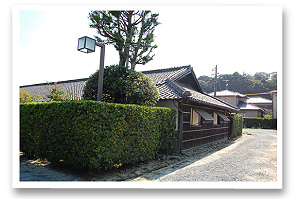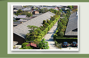 松阪城搦手から続く小路を挟んで東西に2棟が並び、建物を取り囲む槙の生垣や前庭、上り框のある玄関、建物背後の角屋(つのや)・畑地等と続き、時代劇のセットの様な景観が整然と拡がっています。